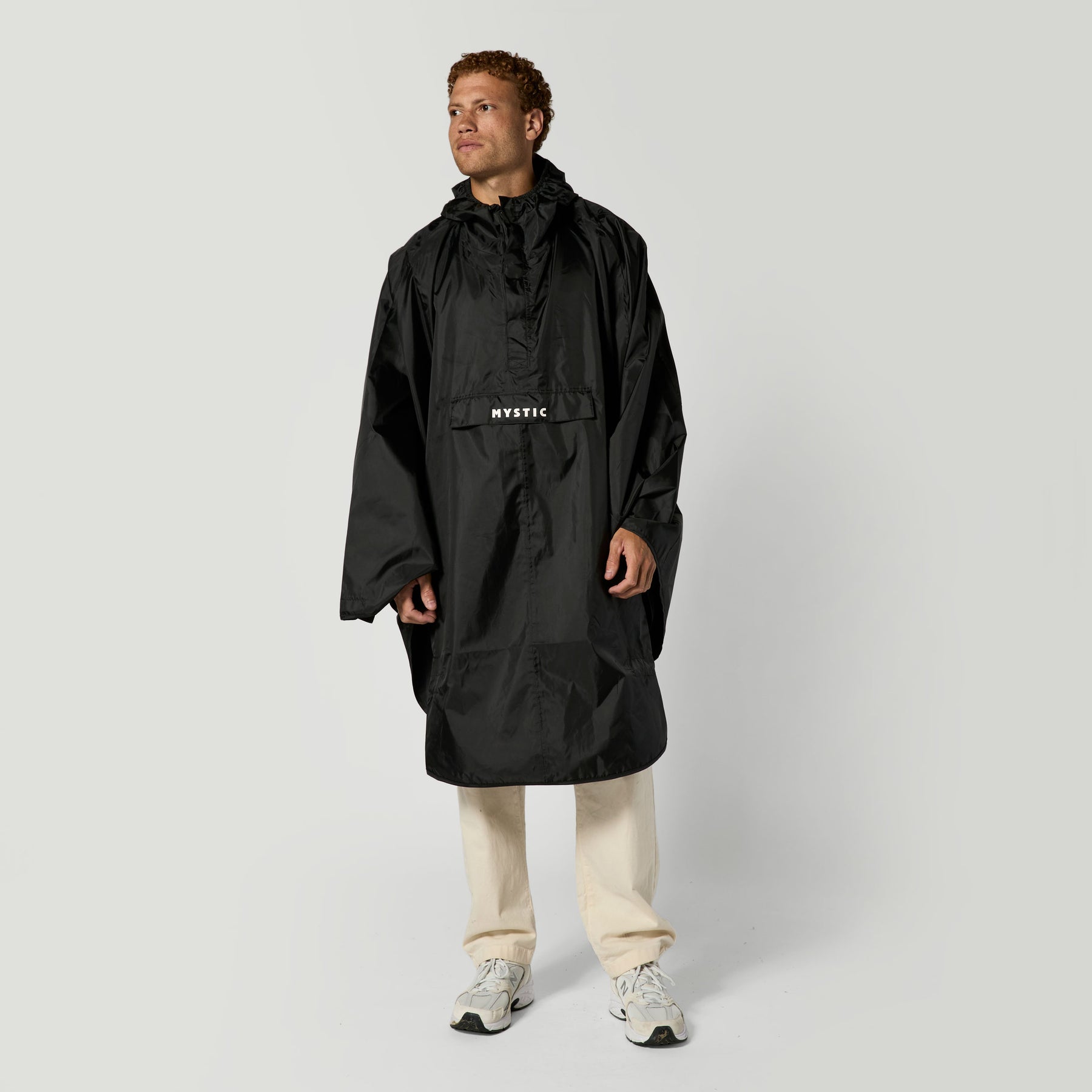 A classic rain poncho, done the Mystic way. Made from 100% recycled polyester with taped seams and a 2000mm waterproof rating, built to keep you dry from the beach to the bike lane. The oversized fit makes it easy to throw on when the weather turns, while adjustable leg and wrist straps keep it locked in place. Finished with a kangaroo pocket and Mystic branding at the flap.